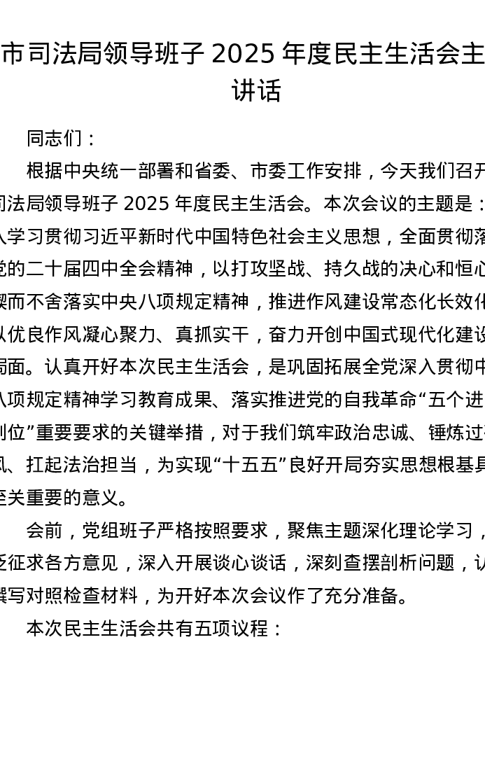 市司法局领导班子2025年度xxxxx主持讲话