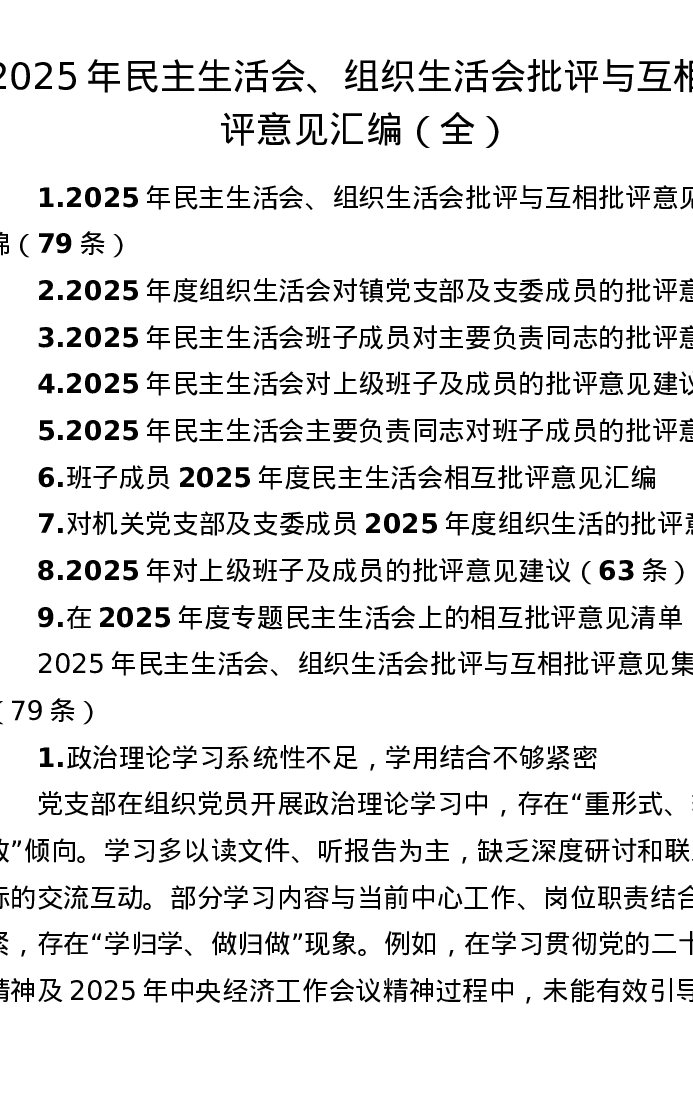 2025年xxxxx、组织xxx批评与互相批评意见汇编(全)
