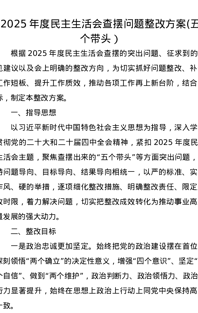 2025年度xxxxx查摆问题整改方案 (五个带头)