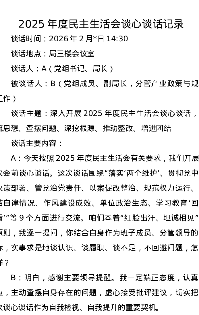2025年度xxxxx谈心谈话记录