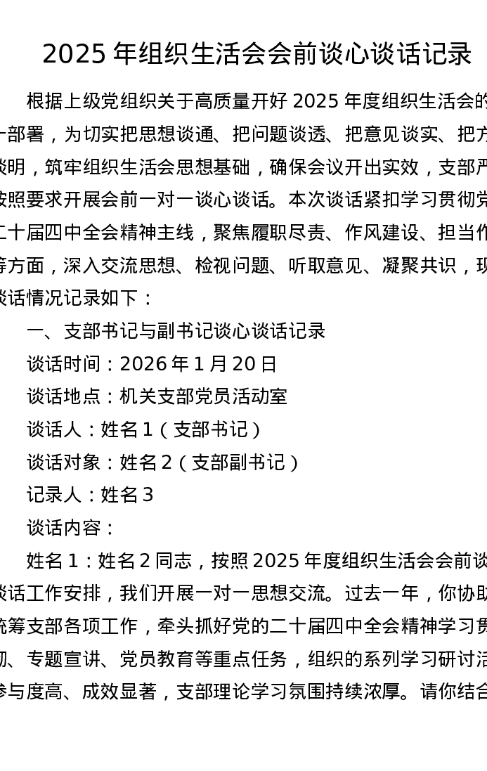 2025年组织xxx会前谈心谈话记录(3164字)