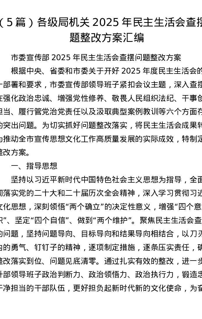 汇编:各级局机关2025年xxxxx查摆问题整改方案5篇