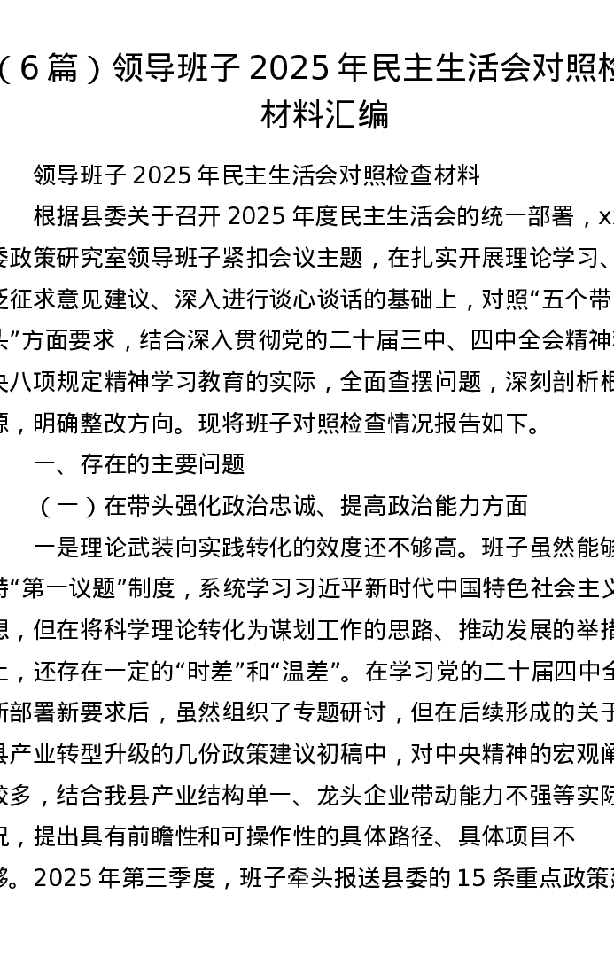 汇编:领导班子2025年xxxxx对照检查材料6篇