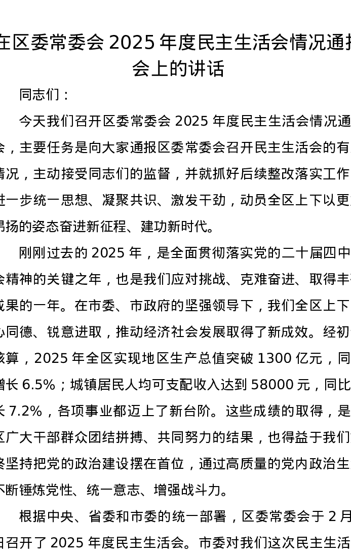 在区委常委会2025年度xxxxx情况通报会上的讲话