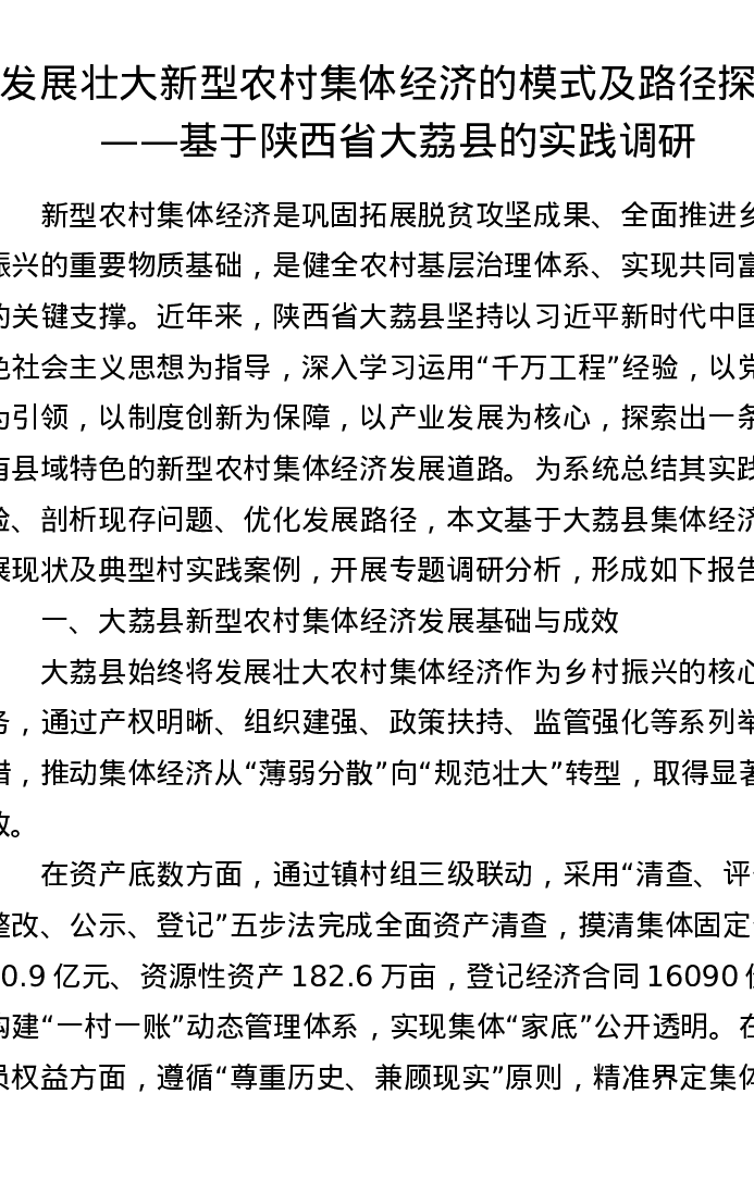 发展壮大新型农村集体经济的模式及路径探析——基于陕西省大荔县的实践调研
