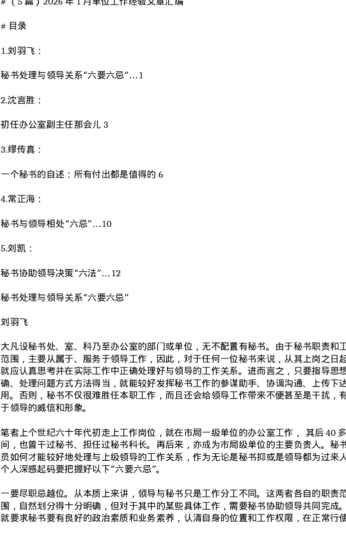 汇编:2026年1月单位工作经验文章5篇