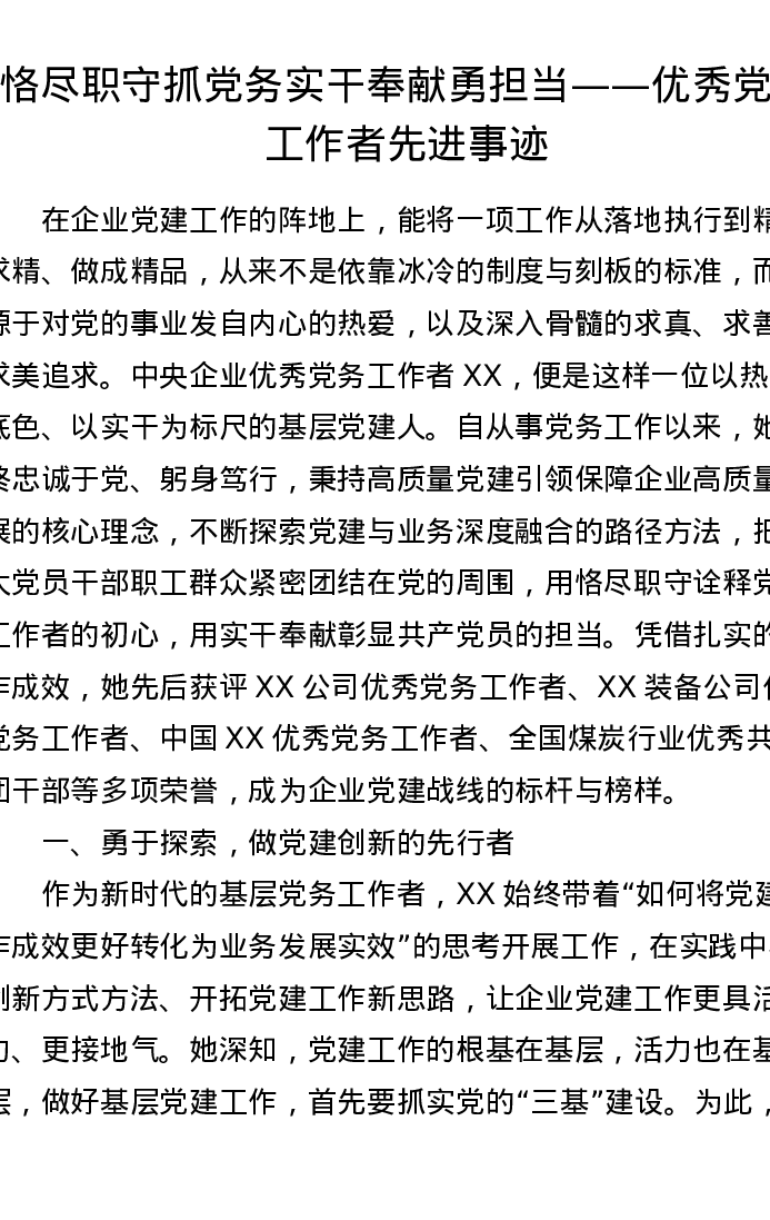 恪尽职守抓党务 实干奉献勇担当——优秀党务工作者先进事迹