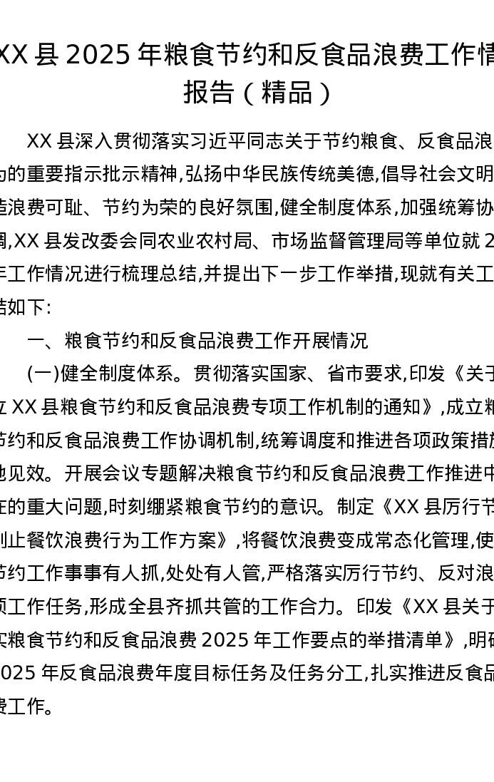XX县2025年粮食节约和反食品浪费工作情况报告