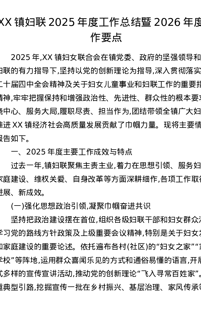 XX镇妇联2025年度工作总结暨2026年度工作要点