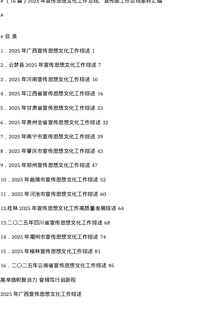 汇编:2025年宣传思想文化工作总结、宣传部工作总结素材16篇