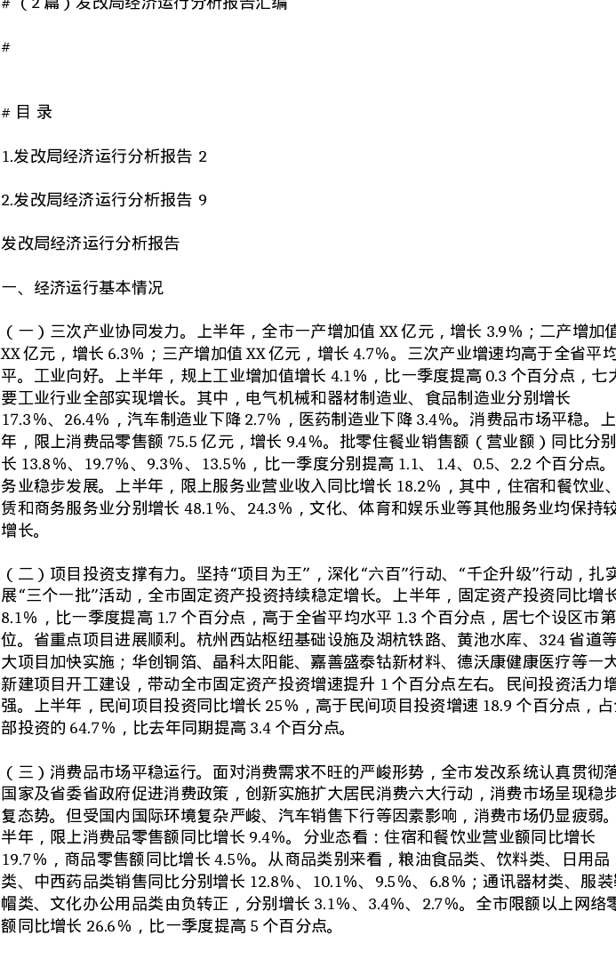 汇编:发改局经济运行分析报告2篇
