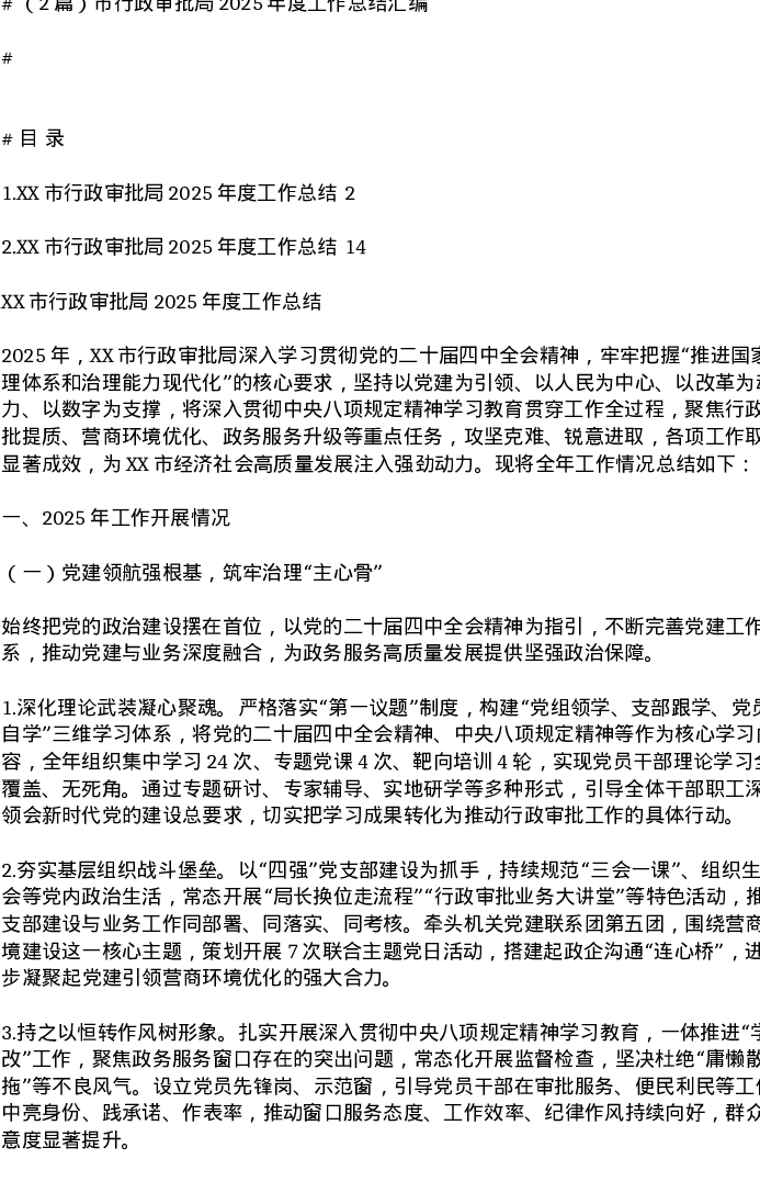 汇编:市行政审批局2025年度工作总结2篇