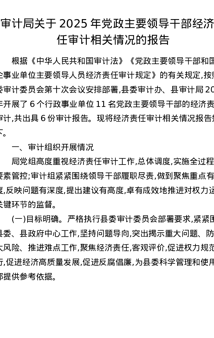 审计局关于2025年党政主要领导干部经济责任审计相关情况的报告