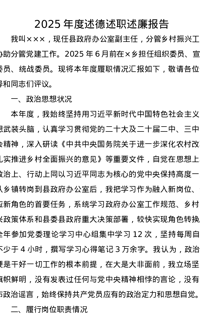 2025年度述德述职述廉报告