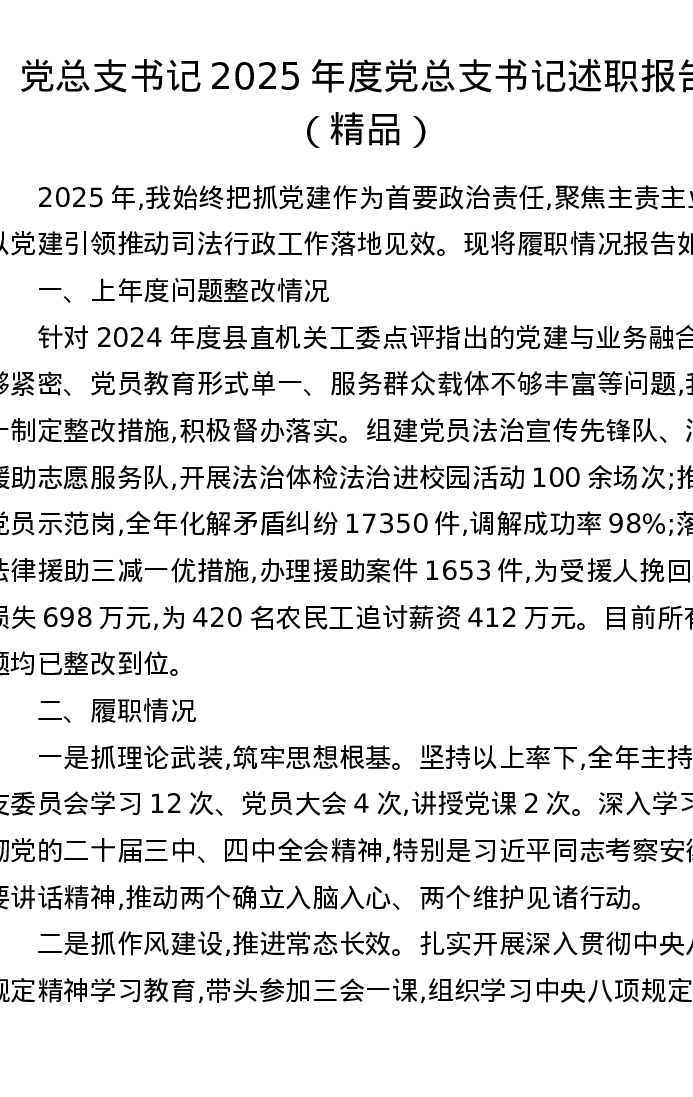 党总支书记2025年度党总支书记述职报告