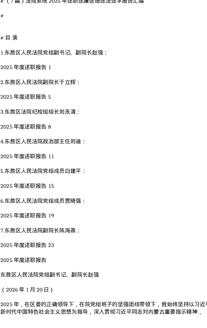汇编:法院系统2025年述职述廉述德述法述学报告7篇