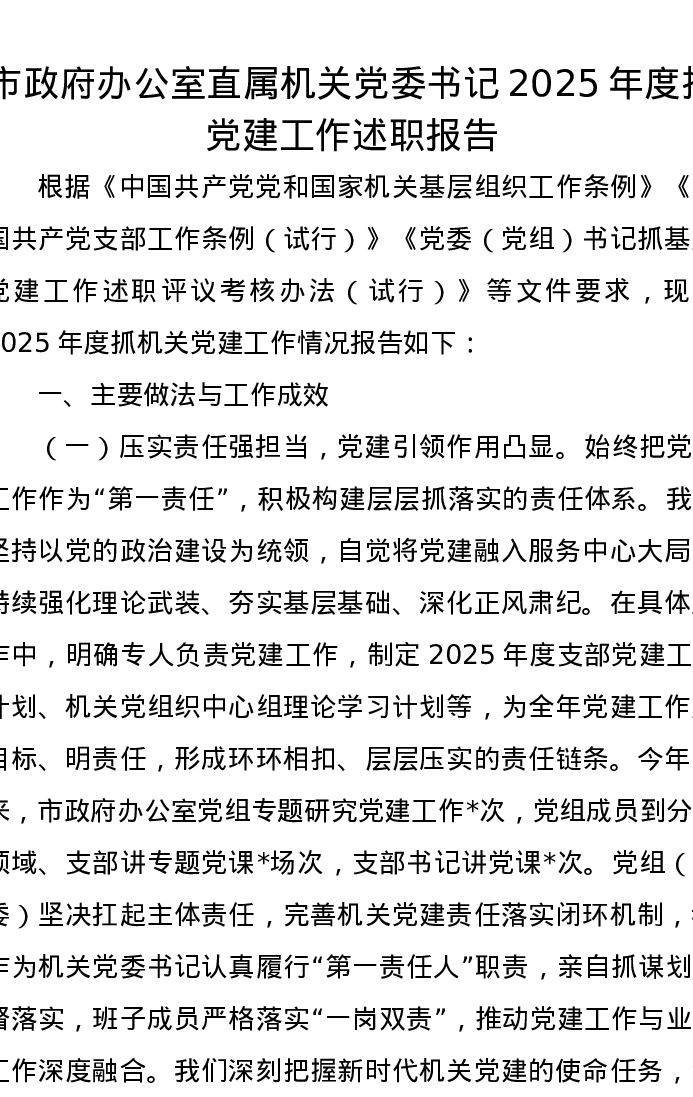市政府办公室直属机关党委书记2025年度抓党建工作述职报告