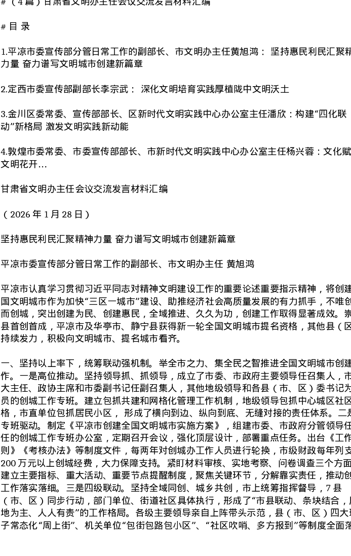 汇编:甘肃省文明办主任会议交流发言材料4篇