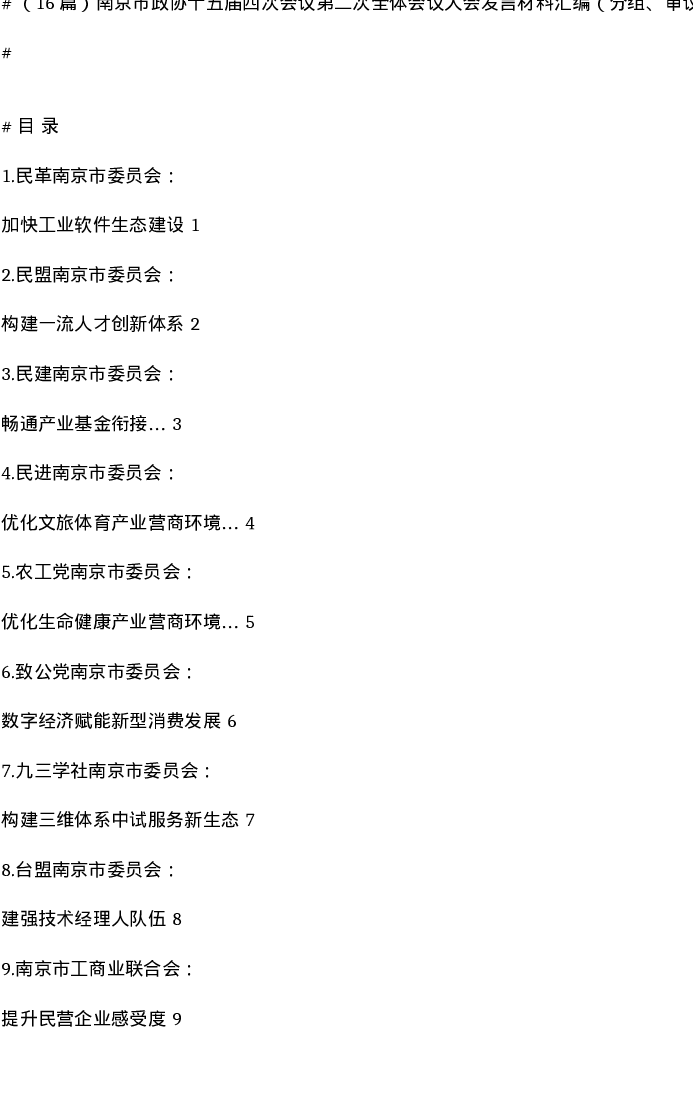 汇编:南京市政协十五届四次会议第二次全体会议大会发言材料汇编(分组、审议)16篇