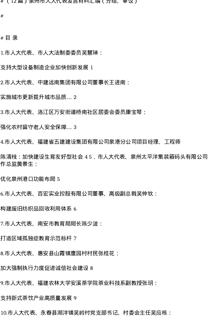 汇编:泉州市人大代表发言材料汇编(分组、审议)12篇