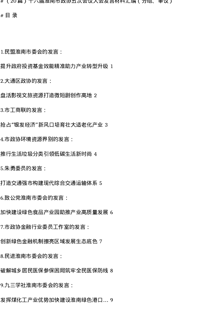 汇编:十六届淮南市政协五次会议大会发言材料汇编(分组、审议)20篇