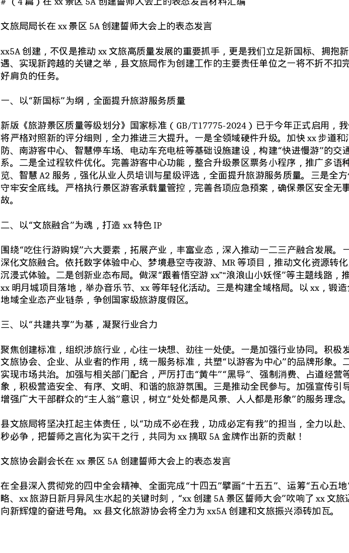 汇编:在xx景区5A创建誓师大会上的表态发言材料4篇