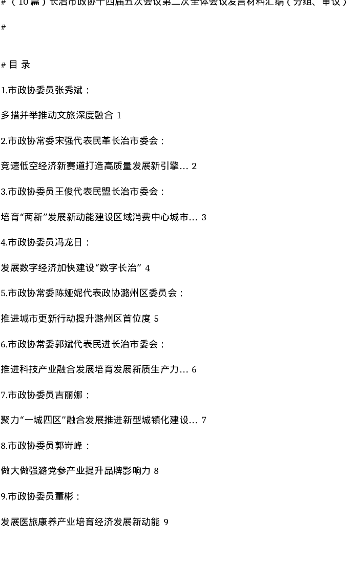 汇编:长治市政协十四届五次会议第二次全体会议发言材料汇编(分组、审议)10篇