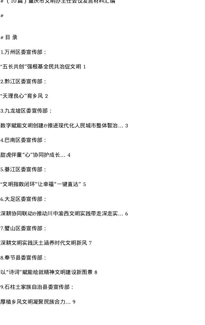汇编:重庆市文明办主任会议发言材料10篇