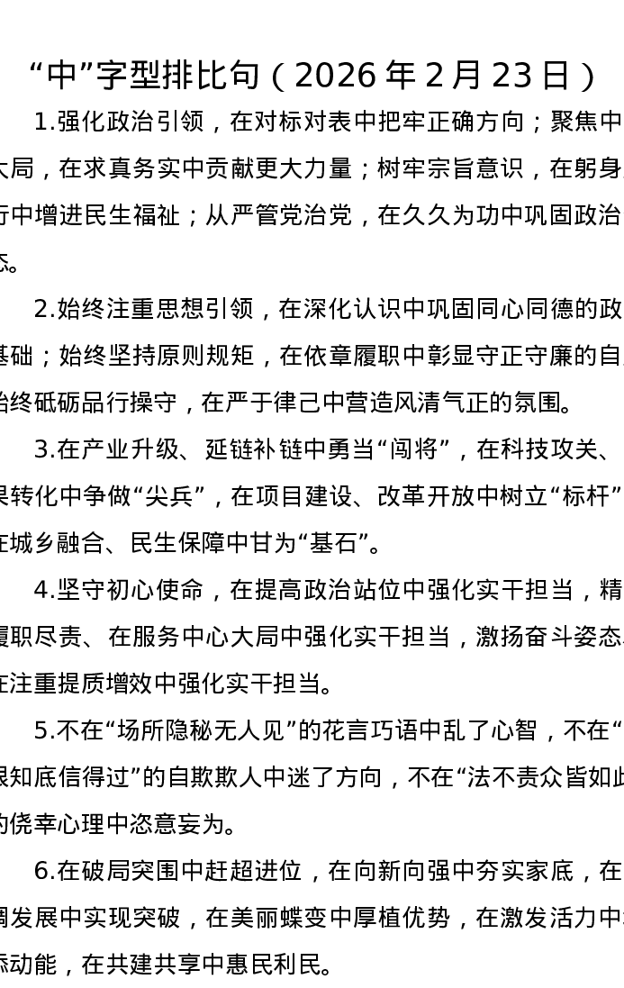 中字型排比句(2026年2月23日)