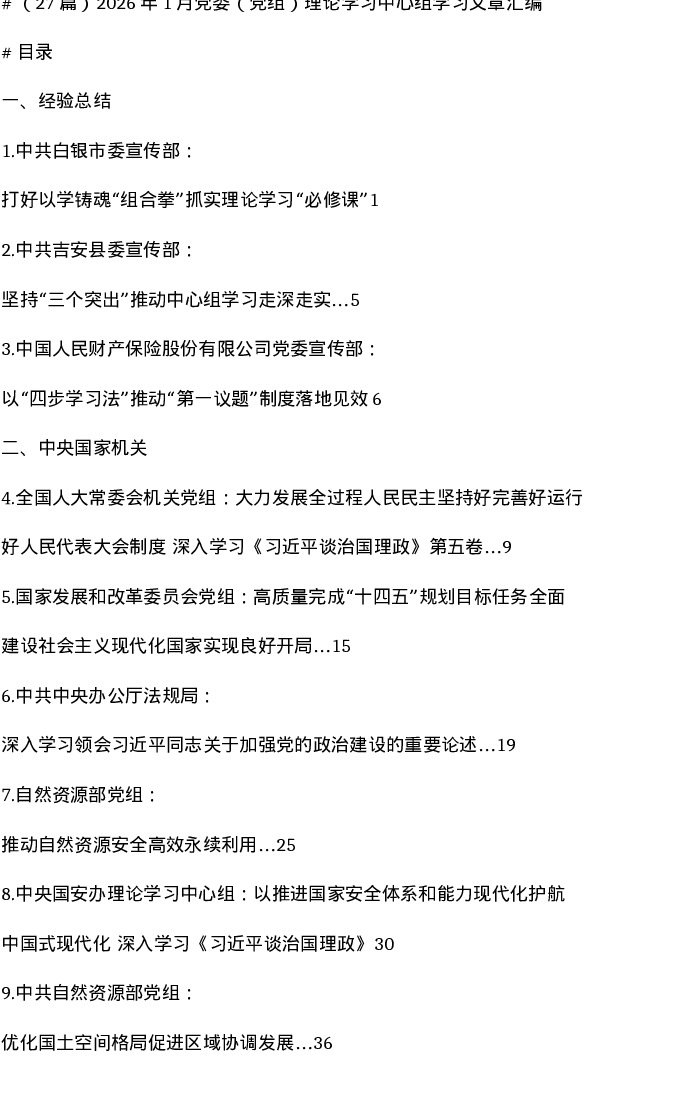 汇编:2026年1月党委(党组)理论学习中心组学习文章27篇