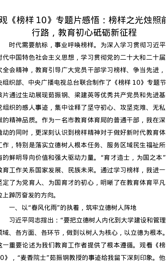 观《榜样10》专题片感悟:榜样之光烛照前行路,教育初心砥砺新征程