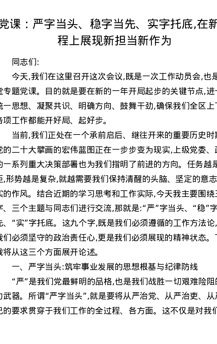 党课:严字当头、稳字当先、实字托底,在新征程上展现新担当新作为