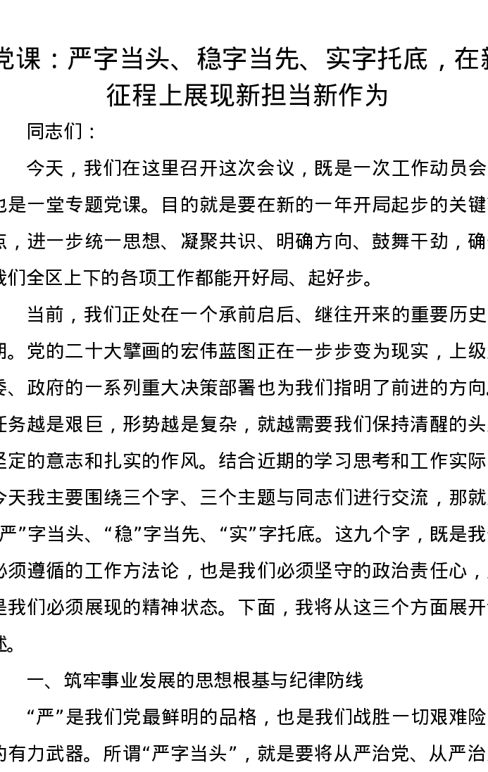 党课讲稿:严字当头、稳字当先、实字托底,在新征程上展现新担当新作为