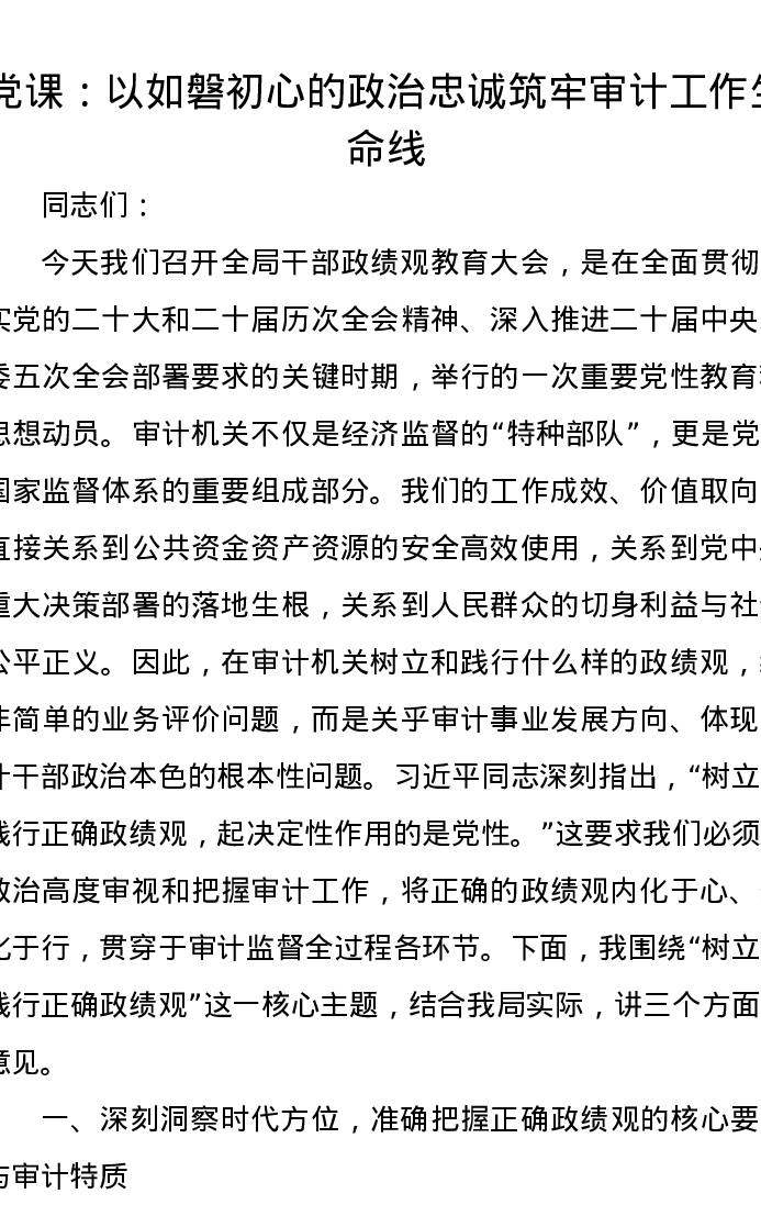 党课讲稿:以如磐初心的政治忠诚筑牢审计工作生命线