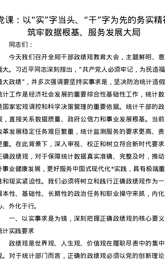 党课讲稿:以实字当头、干字为先的务实精神,筑牢数据根基、服务发展大局