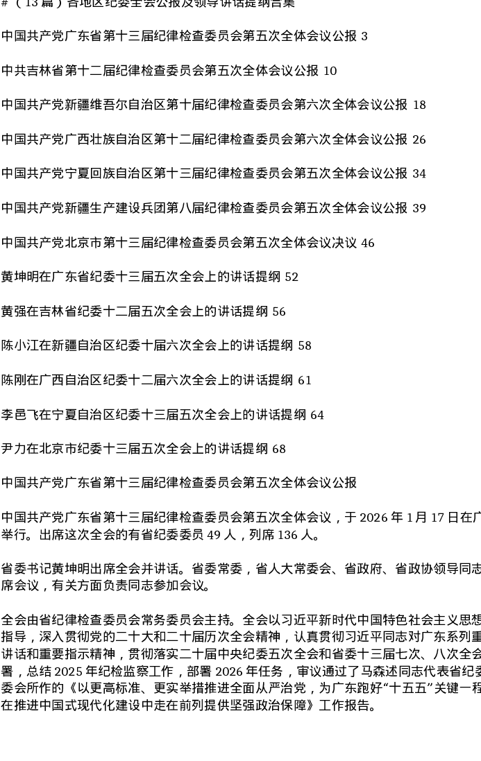 汇编:各地区纪委全会公报及领导讲话提纲合集13篇