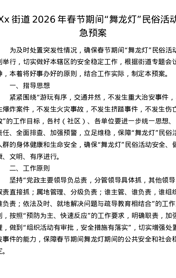 Xx街道2026年春节期间舞龙灯民俗活动应急预案