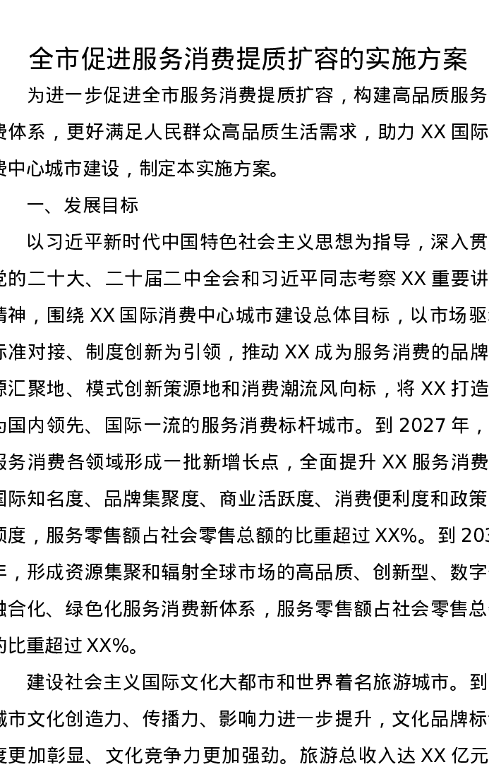 全市促进服务消费提质扩容的实施方案