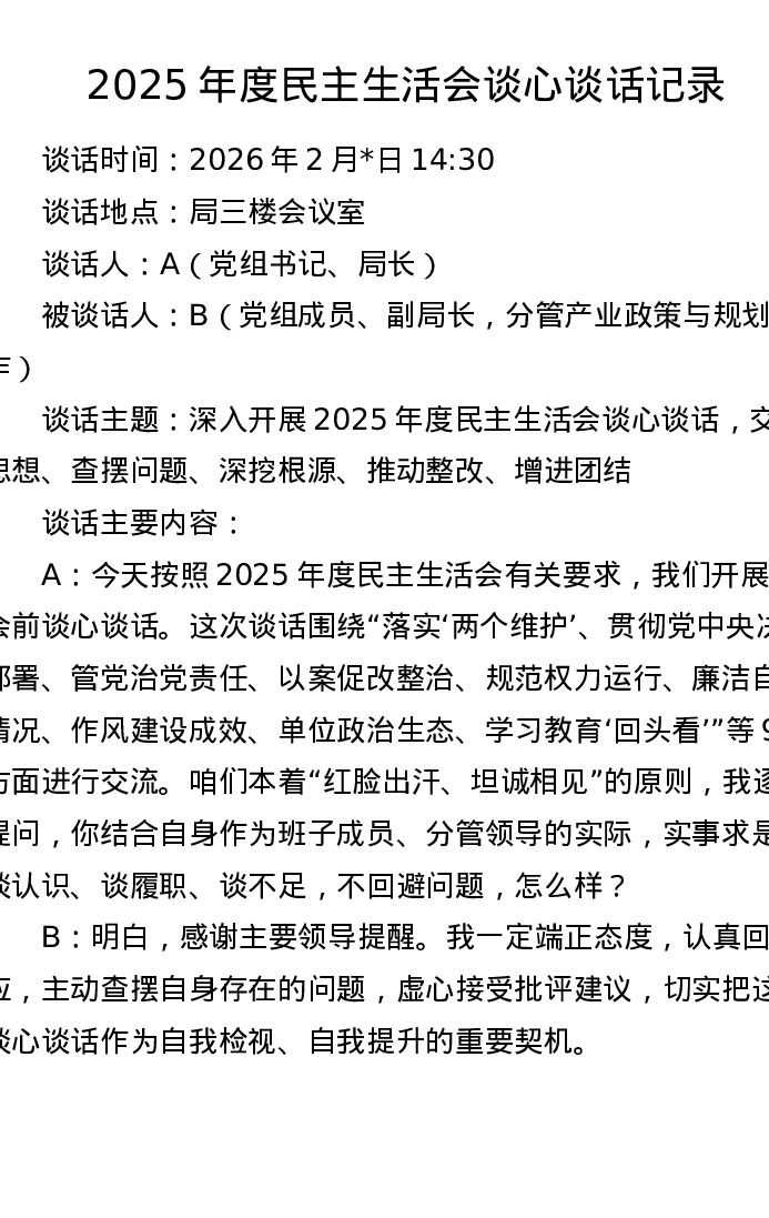 2025年度xxxxx谈心谈话记录