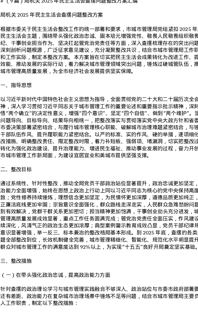 汇编:局机关2025年xxxxx查摆问题整改方案9篇