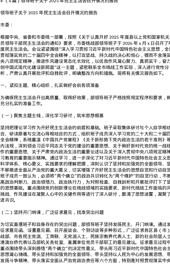 汇编:领导班子关于2025年xxxxx召开情况的报告4篇