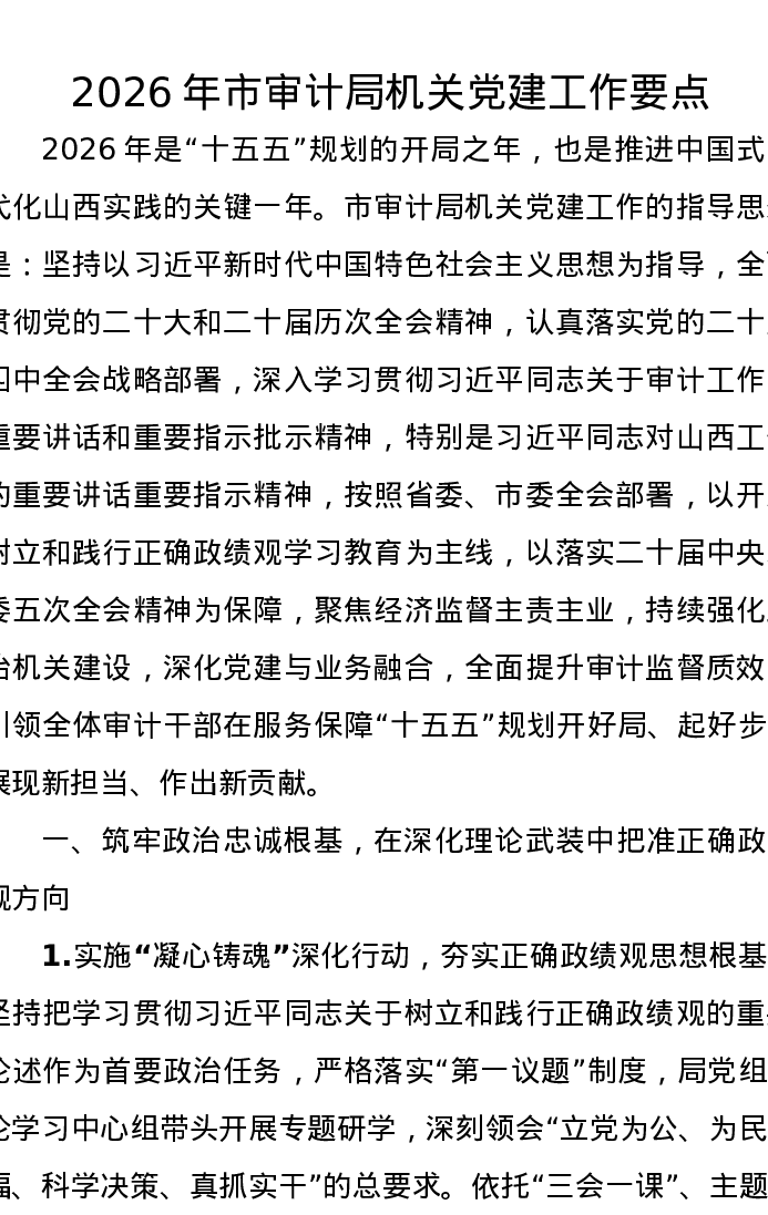 2026年市审计局机关党建工作要点