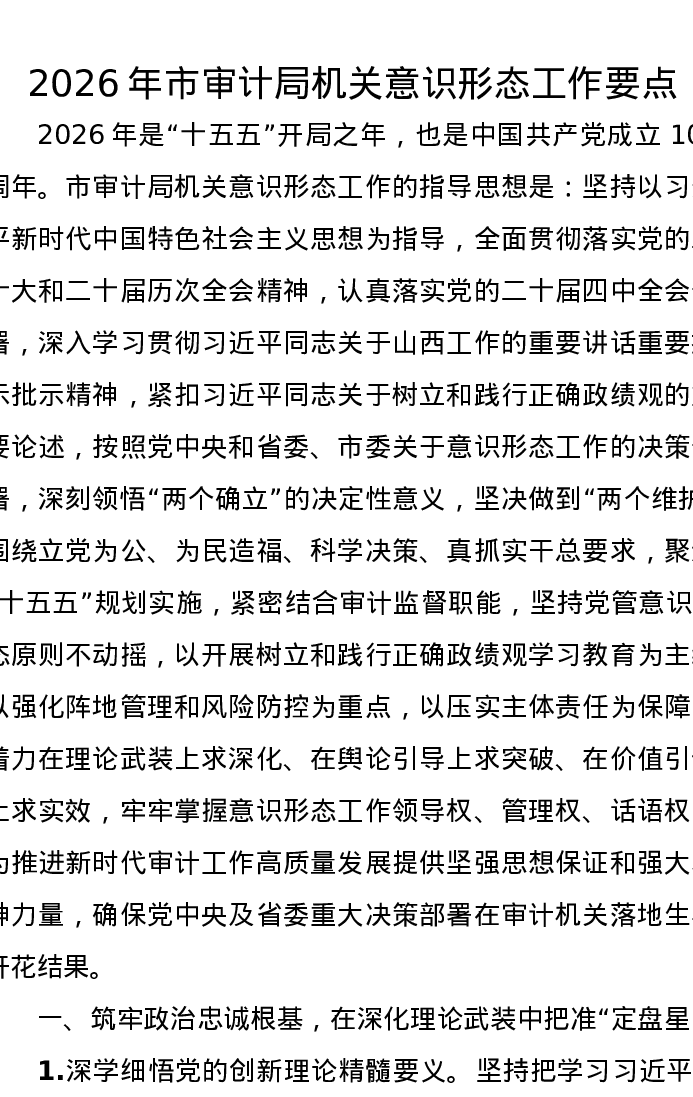 2026年市审计局机关意识形态工作要点