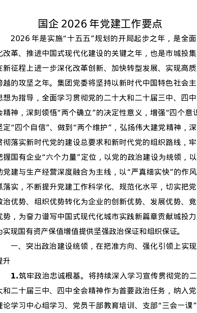 国企2026年党建工作要点