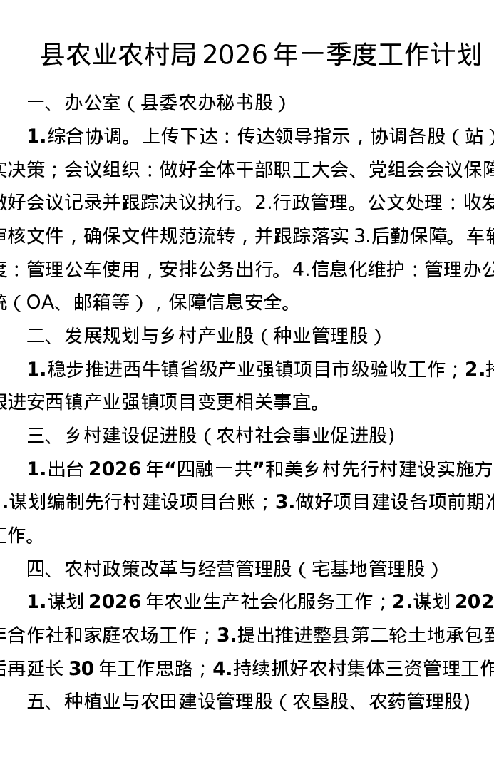 县农业农村局2026年一季度工作计划
