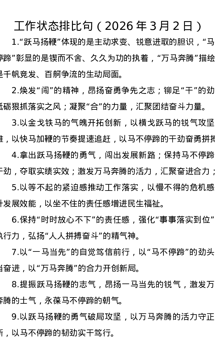 工作状态排比句(2026年3月2日)