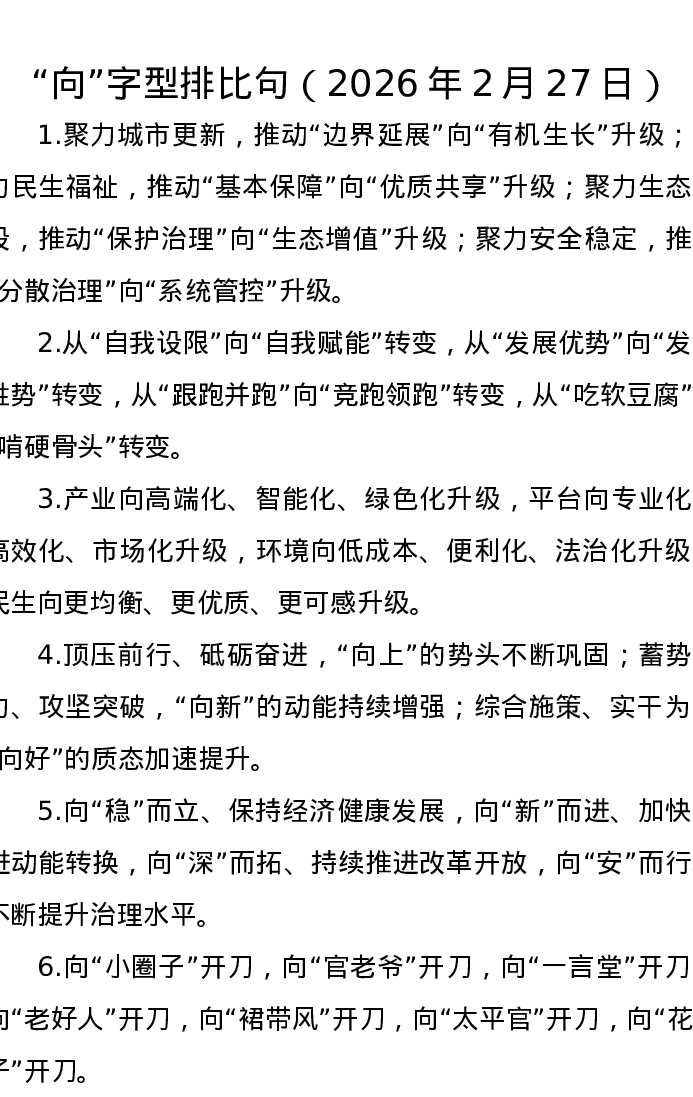向字型排比句(2026年2月27日)
