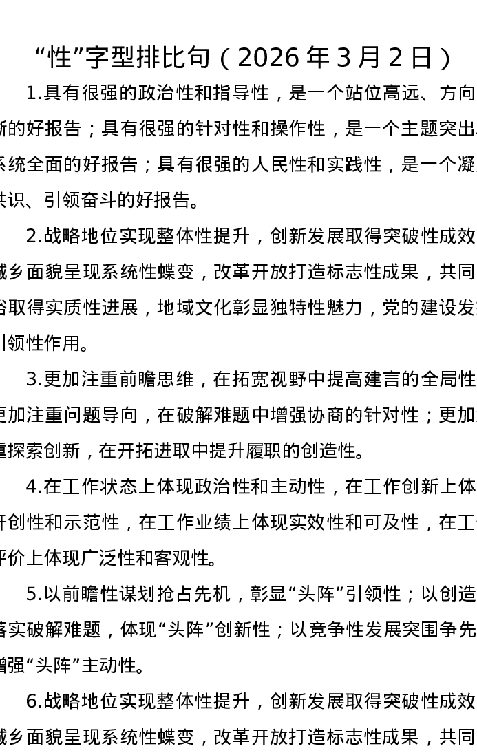性字型排比句(2026年3月2日)