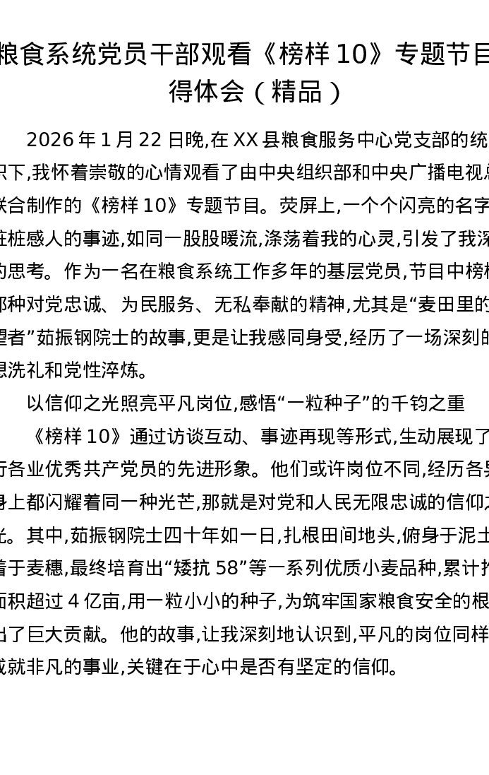 粮食系统党员干部观看《榜样10》专题节目心得体会