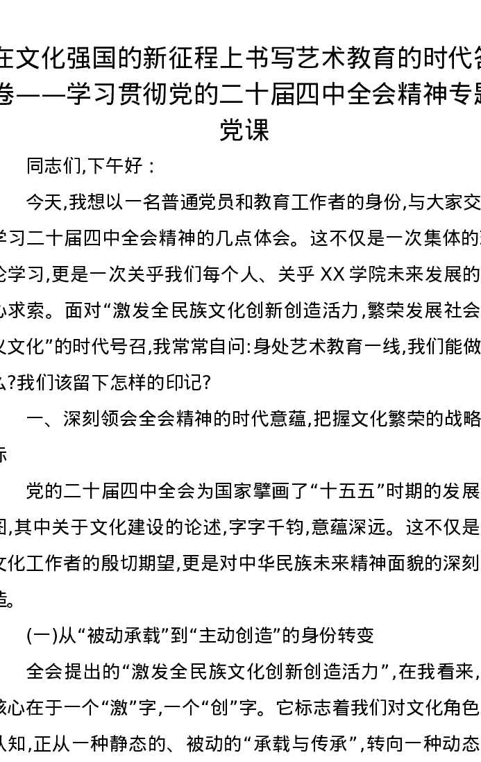 在文化强国的新征程上书写艺术教育的时代答卷——学习贯彻党的二十届四中全会精神专题党课